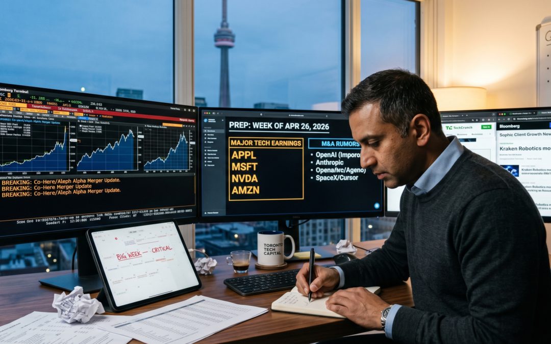 After a geopolitical driven mid-week pause, markets closed decisively higher. Dow Jones lost 0.4% last week, S&P 500 gained 0.55%, Nasdaq composite was up 1.5%. Nasdaq and S&P 500 hit fresh highs Friday, aided by chip stocks. Multiple hyper scalers and AI related companies are expected to report earnings next week, amidst ongoing geopolitical volatility. Google and Amazon committed a combined US$65 billion in new funding and compute capacity to Anthropic, which is now seeing investor interest at a US$800 billion valuation. OpenAI is forming a US$10 billion joint venture, called DeployCo, to drive enterprise adoption. SpaceX is reportedly preparing for its June IPO, and also potentially acquiring AI coding startup Cursor for US$60 billion. Cursor’s annualized revenue recently hit US$2.7 billion. Nuclear startup, X-energy went public, raising US$1 billion in its IPO. Intel shares soared 20% on strong data center growth. Revolut is targeting a US$200 billion valuation for its eventual IPO. Tesla reported a 16% revenue increase to US$22.4 billion, as it pivots to its Robotaxi service. ServiceNow shares fell despite 22% growth due to Armis acquisition “headwinds,”. Adobe announced a US$25 billion buyback. In Canada, Cohere and Germany’s Aleph Alpha agreed to a US$20 billion transatlantic merger. In news pertaining to Sophic clients, Kraken Robotics’ CEO was interviewed by BNN Bloomberg, highlighting the company’s position in the new underwater arms race. Rivemont Portfolio Manager, Mathieu Martin, highlighted his funds’ his 50+ bagger investment journey with Kraken Robotics on the “In the Money” podcast. Replenish Nutrients expanded its credit facilities to $5.45 million to scale its Beiseker facility and tackle global phosphate gaps. 01 Quantum recently demonstrated its quantum-safe solutions at its Toronto AGM and also provided investors a business overview at an investor conference. Hybrid Power Solutions partnered with Movex Innovation to deliver NATO-compliant mobile power units. Renoworks Software reported FY2025 revenue of $7.7 million, with licensing revenue jumping 33% as it transitions to an AI-driven platform.